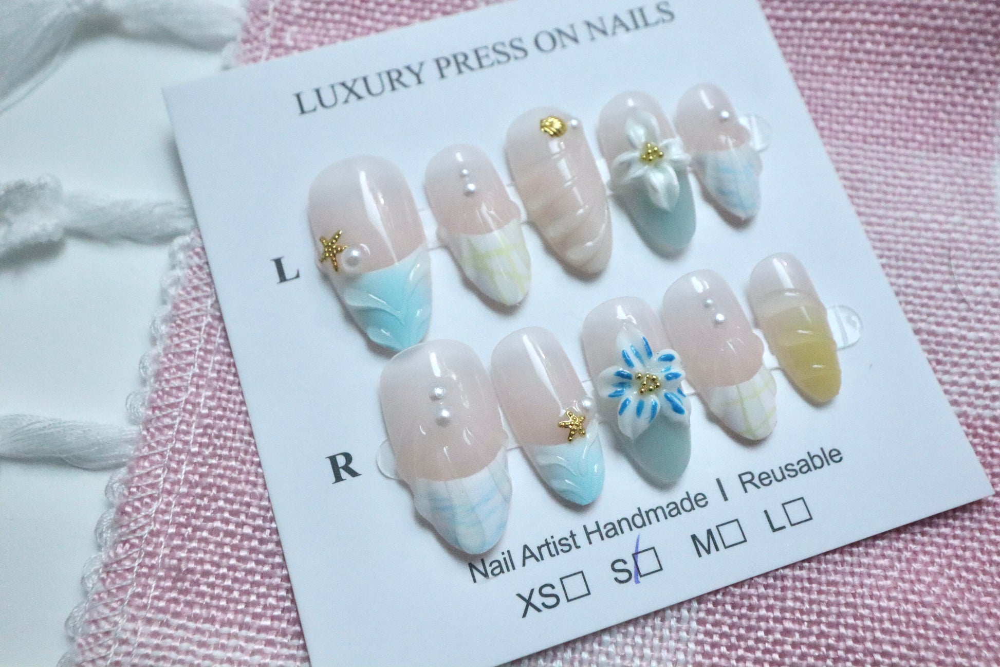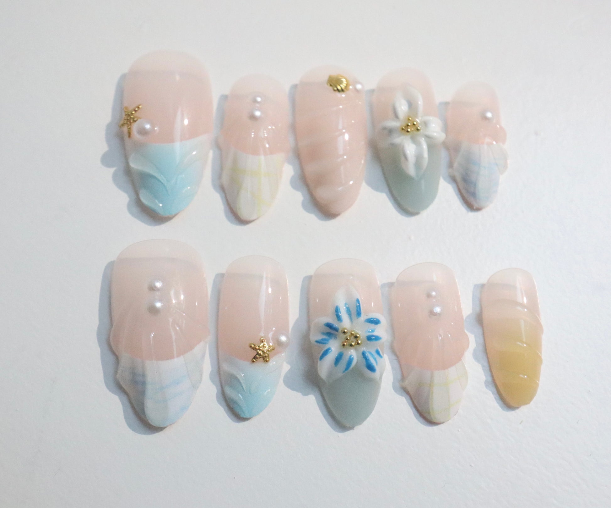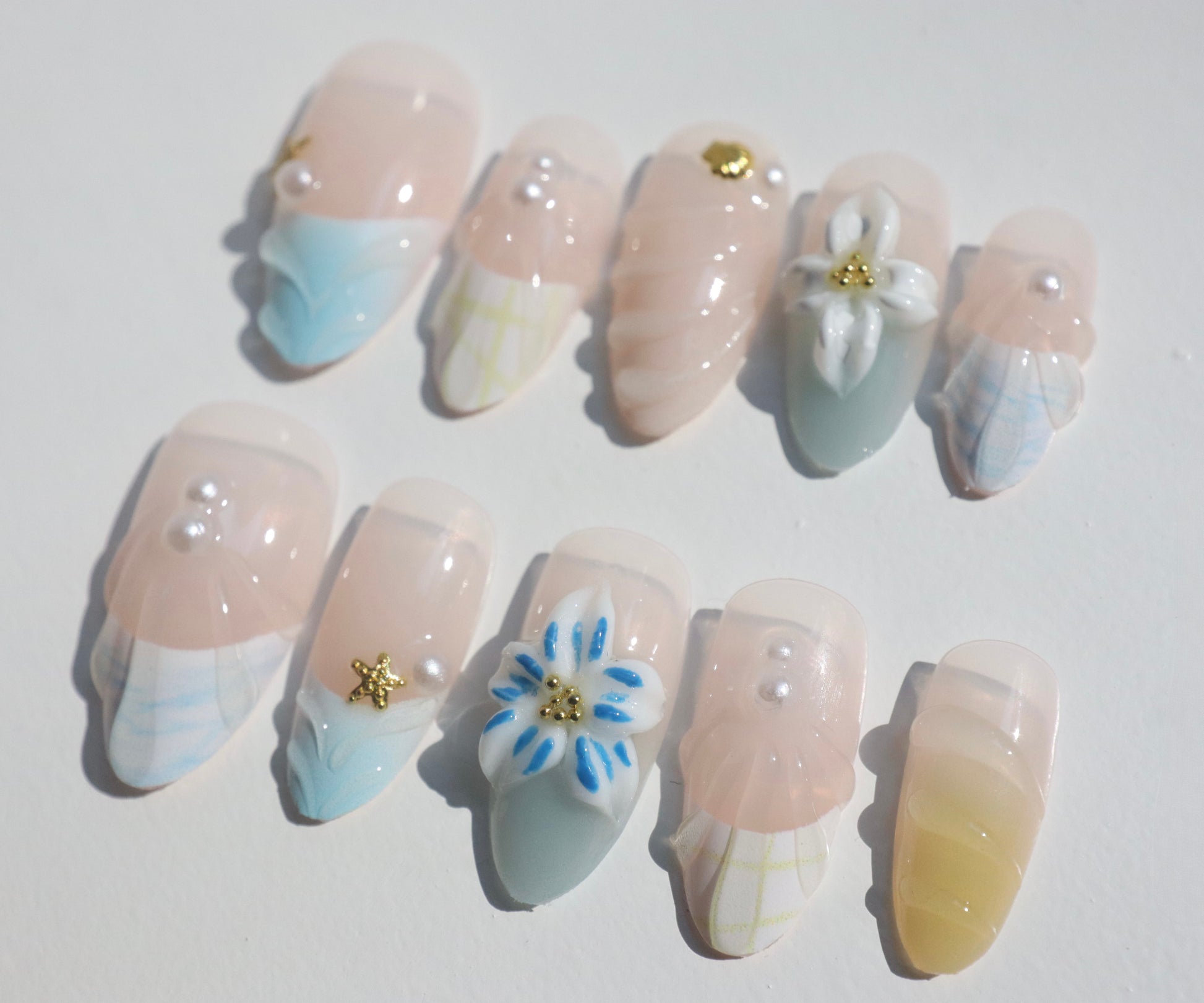 Experience the vibrant spirit of the tropics with Blue Lagoon Bloom nails. This design captures the essence of paradise, bringing a fresh and lively touch to your look. Perfect for those who want to make a bold, colorful statement with their nails.