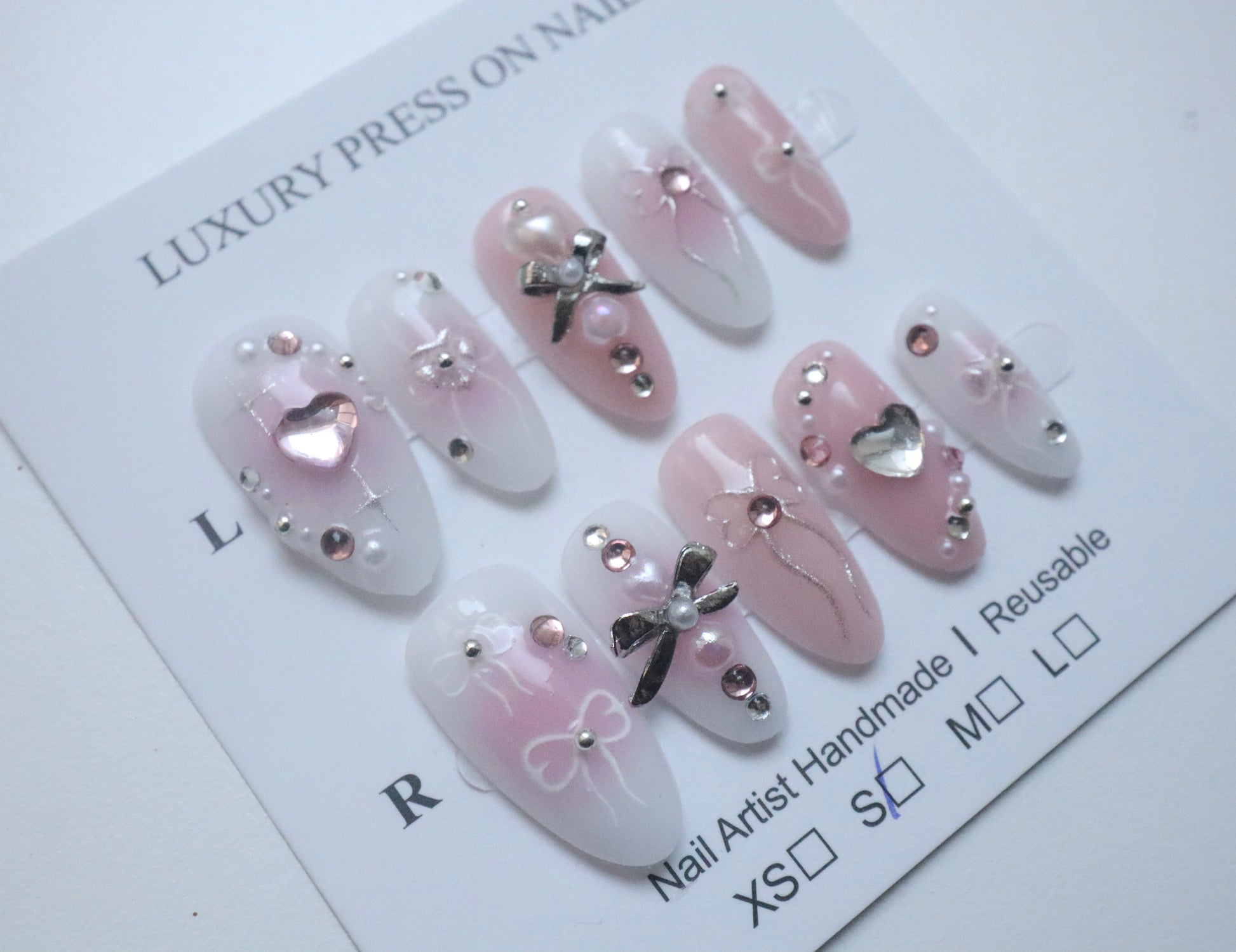 Elevate your nail game with Tied With Love, a stunning nail design that captures elegance and charm. Perfect for any occasion.